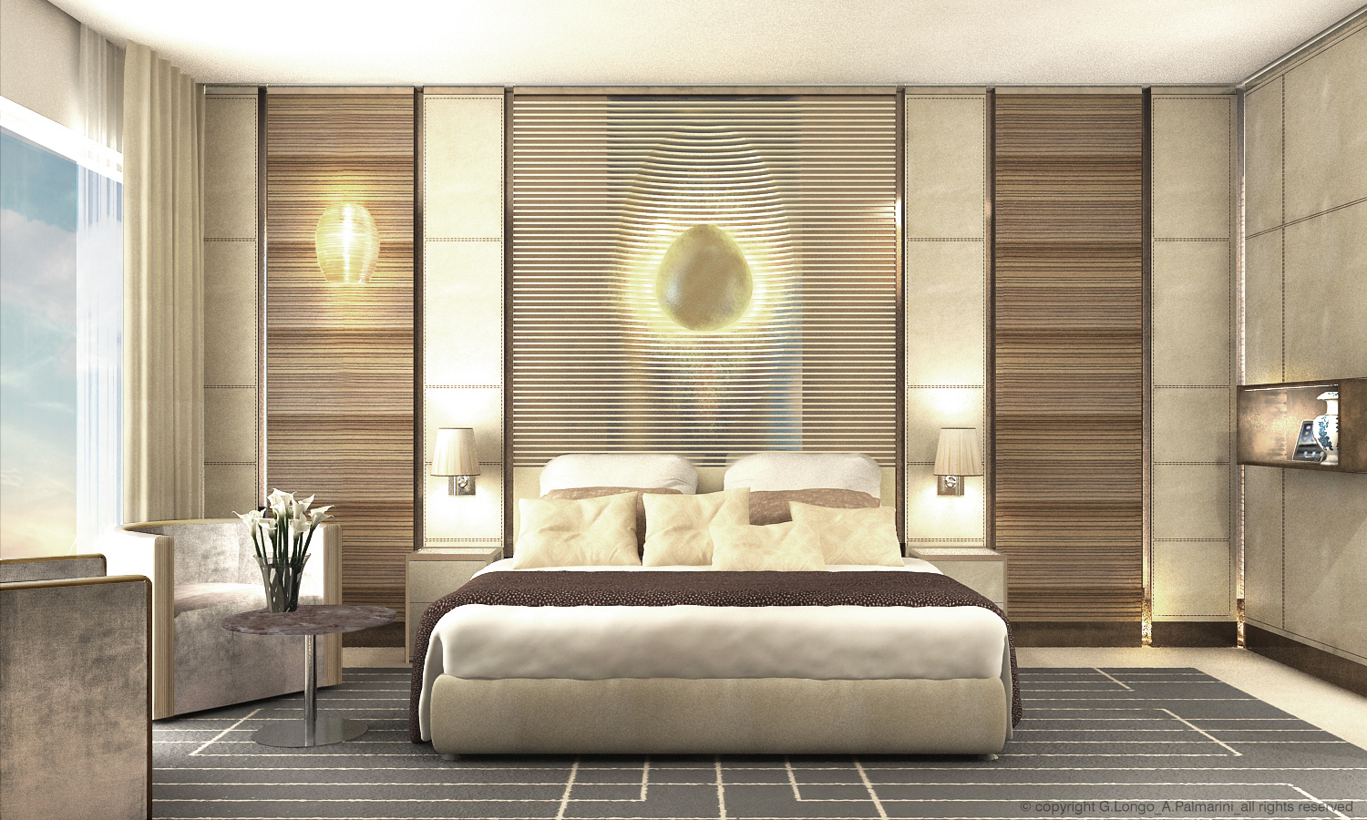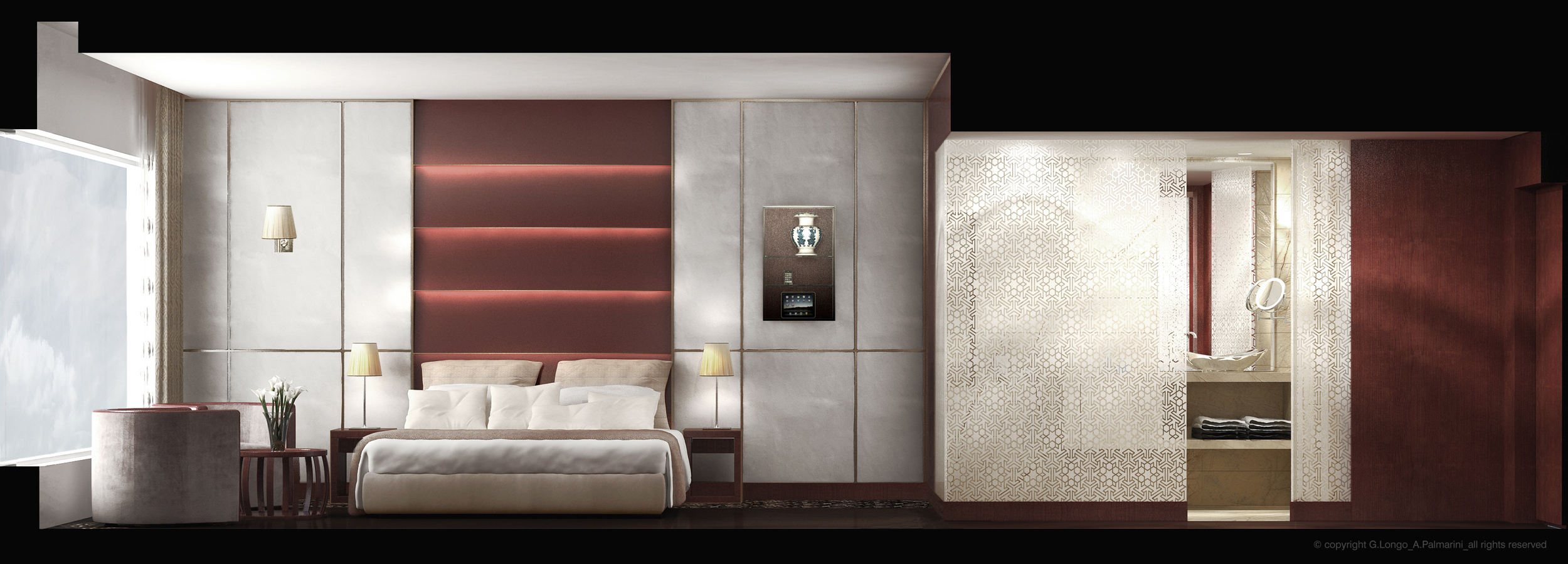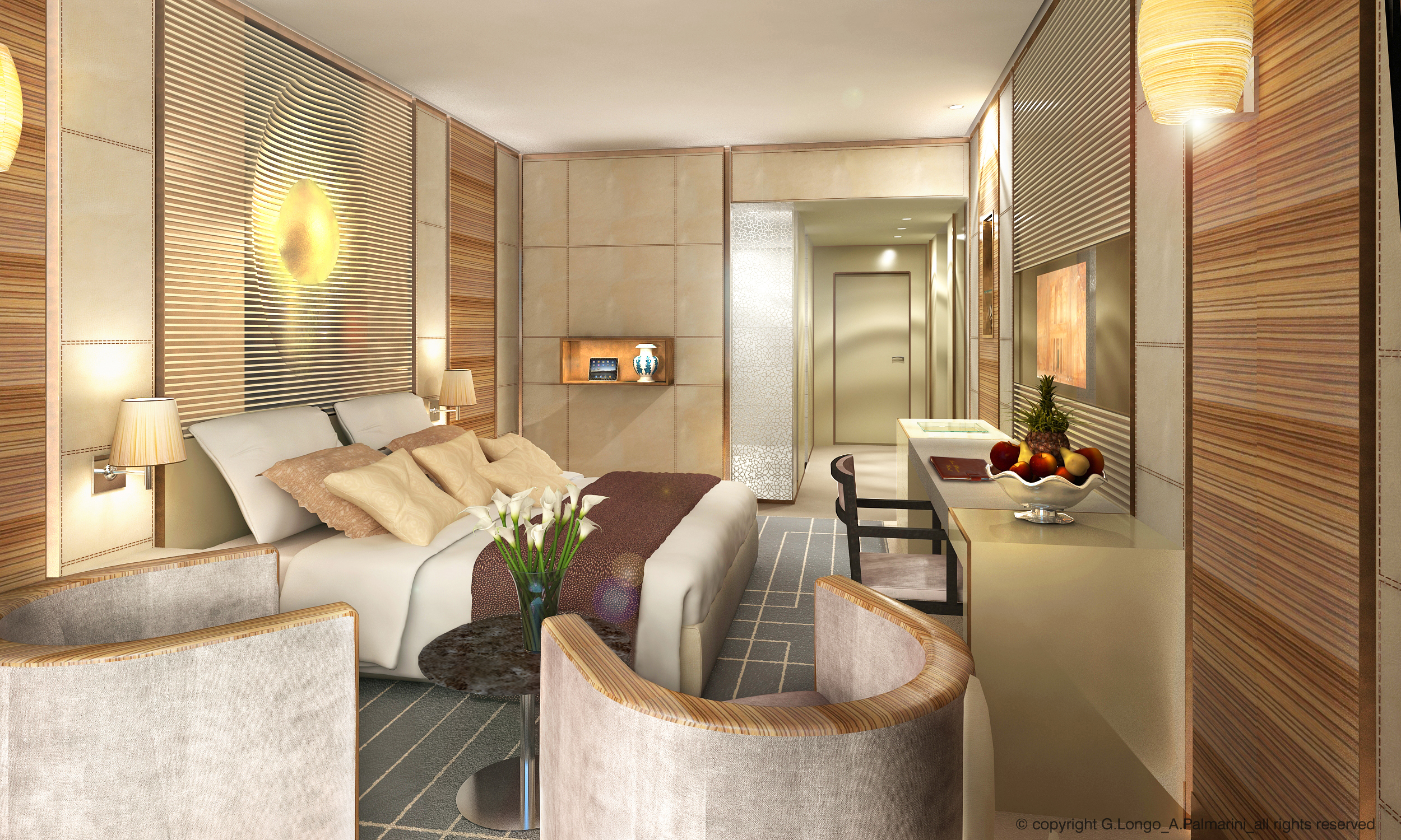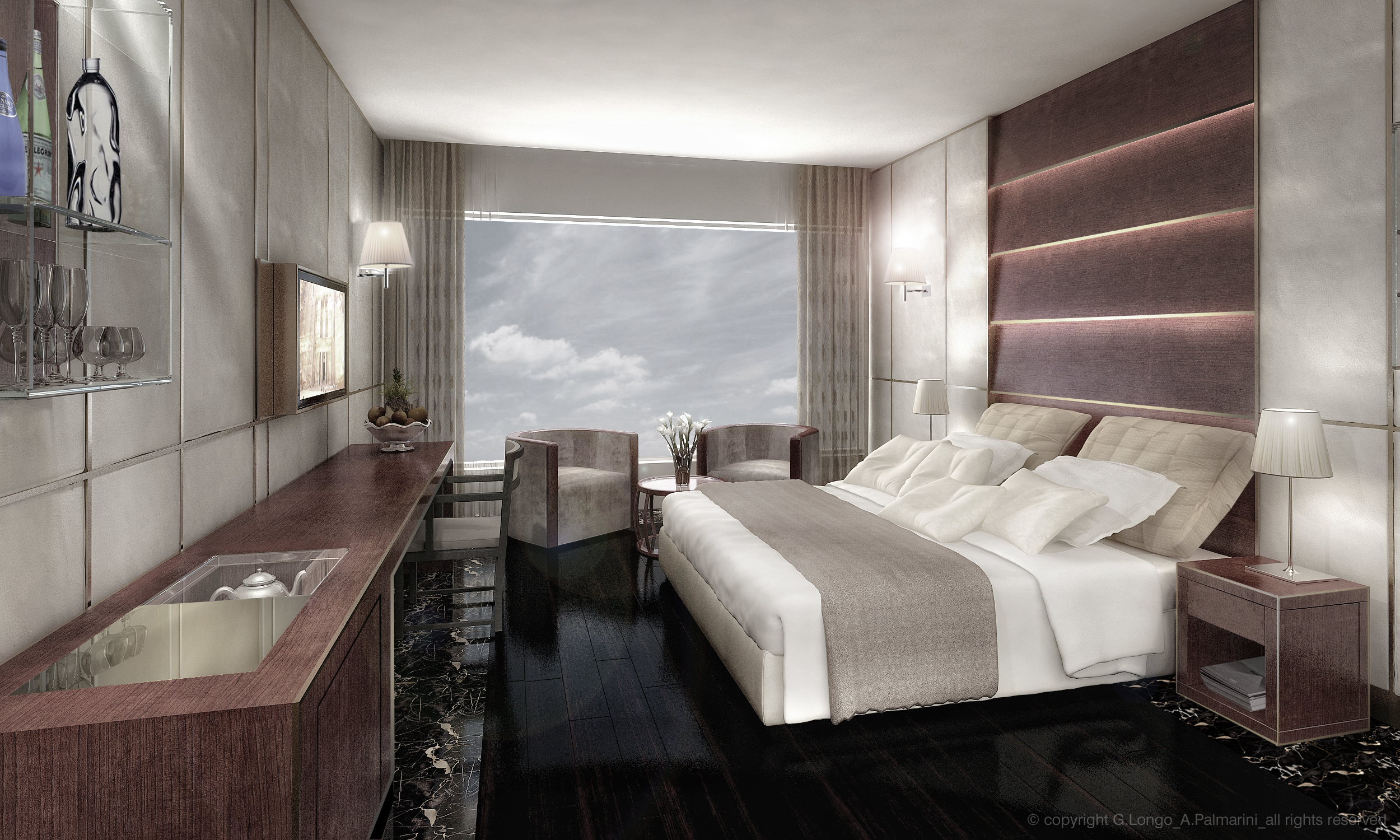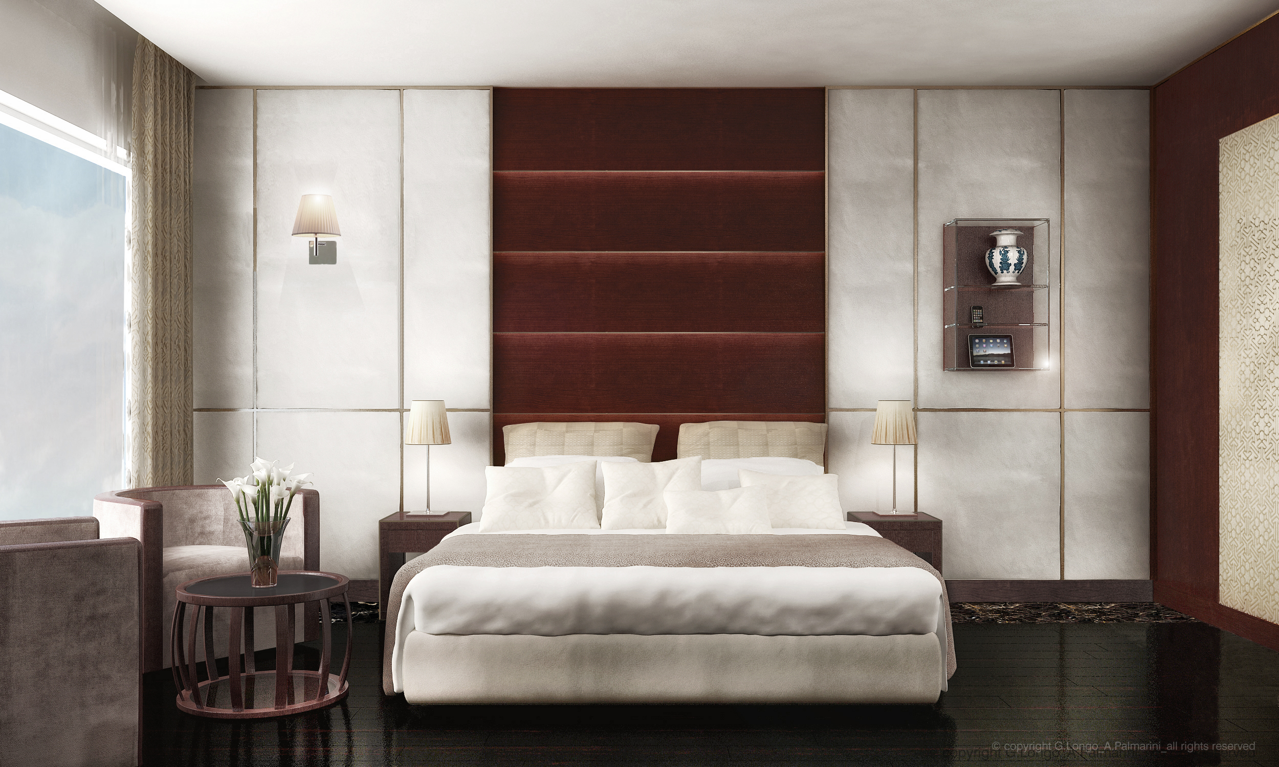 - Luxury Goods, Interior, Design | Guestroom at Marie Plaza Hotel in Amman, Kingdom of Jordan with Archs. G. Longo & A. Palmarini.